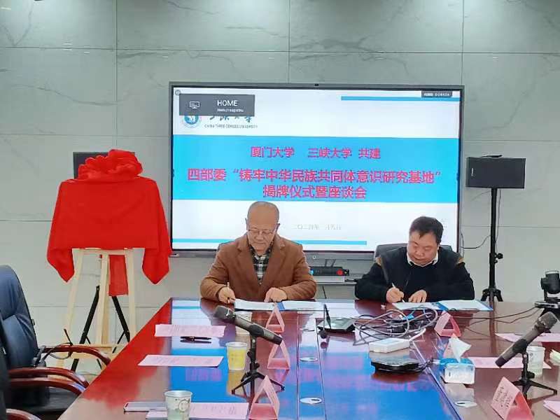 2024年1月8日下午,厦门大学中华民族研究中心与三峡大学共建“四部委铸牢中华民族共同体意识研究基地”签约仪式与共建基地揭牌仪式在三峡智库会议室隆重举行。执行主任董建辉教授代表中心出席。三峡大学党委常委、副校长李东升,党委统战部常务副部长赵静,社会科学发展研究院院长王守文及民族学院班子成员和部分教师代表等参加了活动。仪式由党委统战部常务副部长赵静主持。