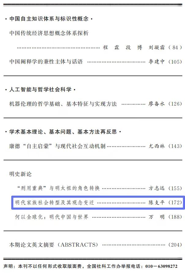 近日,基地首席专家陈支平教授在《中国社会科学》2024年第2期发表论文《明代家族社会转型及其观念变迁》。