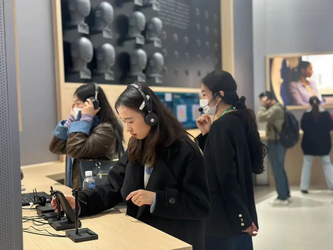 随后一行人在解说员带领下参观亿联网络展厅,了解企业专业远程会议、AI视频会议、高效协作、全场景协作终端等主要产业区块,并体验相关产品,对公司业务和企业文化做进一步了解。